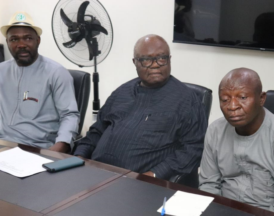 L-R Photo of National President NES (Dr. E. L. Okobia), the BoT Member (Engr. Charles Okoro) and the National Publicity Secretary (Dr Sunday Ogala Akoh).
