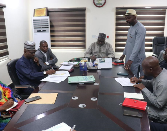The National President NES (Dr. E. L. Okobia) addressing the DG NESREA (Prof. Aliyu Jauro) and his Management Team during the courtesy visit on collaboration on environmental issues at the NESREA Headquarters Abuja.